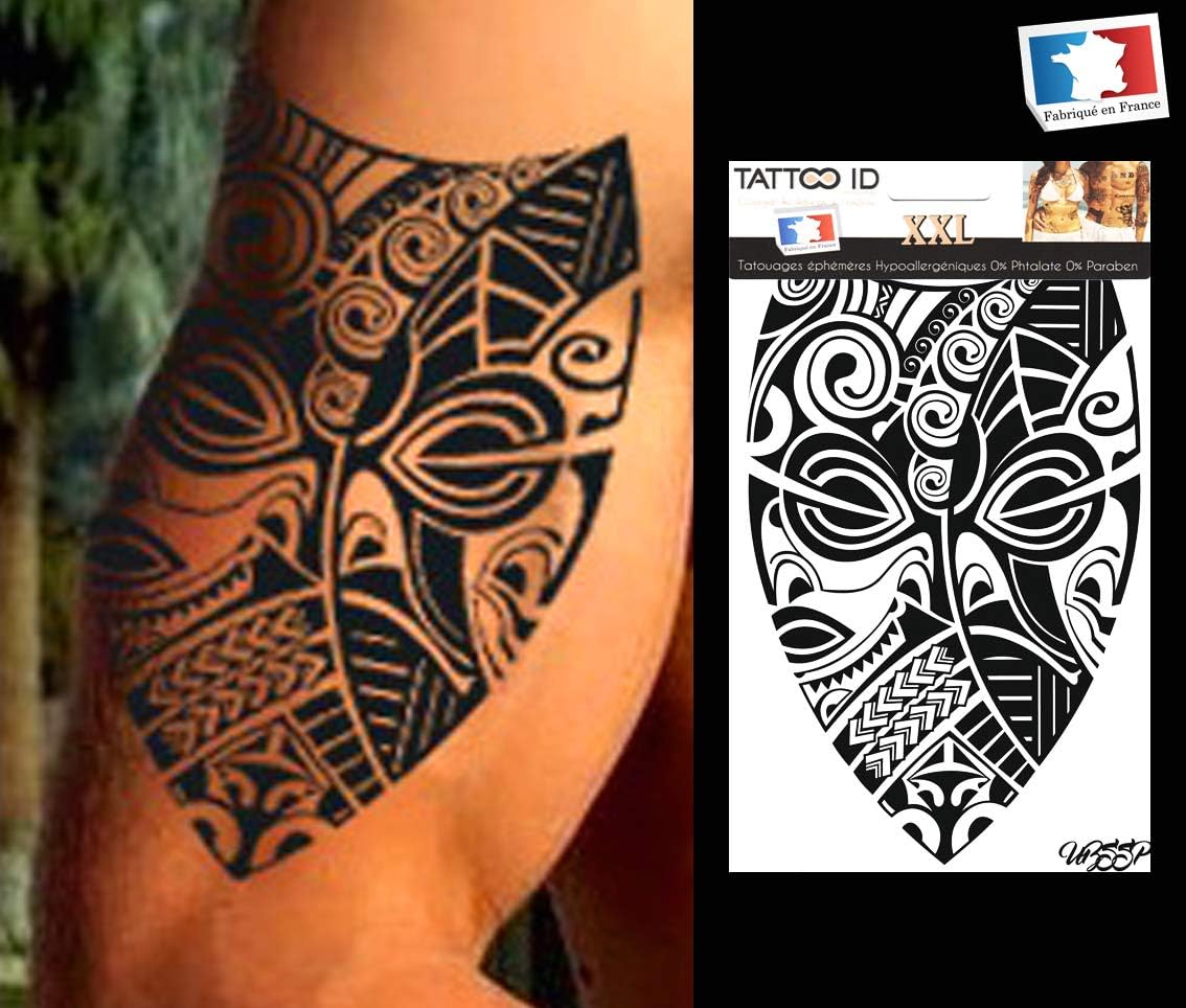 Tatouage Ephemere Temporaire Homme Polynesien Tribal Maori Tattoo Id Xxl Hypoallergenique Fabrique En France 1 Planche 22cm X 14 5cm Homme Amazon Fr Beaute Et Parfum